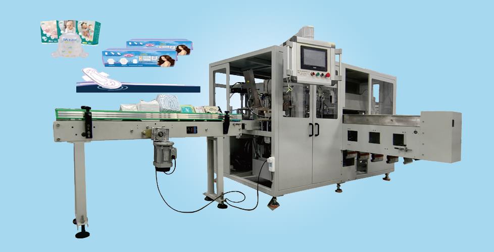 P28包装机是主要用于卫生巾、婴儿纸尿裤(小包)、婴儿护理垫、棉柔巾等装袋封口的全自动包装机。